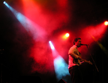 El enorme cantante francés nos dejó un tanto fríos. No fue culpa de sus maneras, sino de lo desangelado del gran escenario Rockdelux por Lois. Un escenario tan grande debería haber acogido a muchos artistas para acompañar al galo en la presentación de un disco con tanta instrumentación como Tout sera comme avant (Labels/Green Ufos, 2004). Sin embargo todo era pregrabado salvo su voz y su guitarra, y trató de acaparar la atención con histriónicos movimientos al son de la batería pero incluso en eso le estaban dando sopas con ondas en otro escenario… Aun así, el tema que da nombre al disco demostró que Dominique A es una de las voces más ensoñadoras del panorama francés, pero eso no es suficiente.