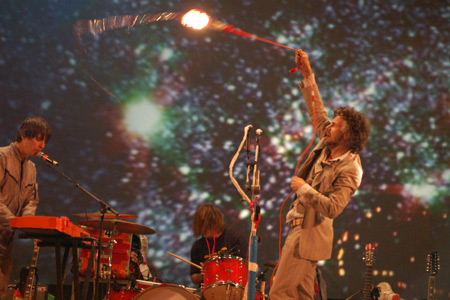 Race for the prize es quizás la mejor canción para abrir un concierto y los Flaming Lips lo saben: es una bomba de alegría y con un ritmo frenético que capturó al publico presente al instante. Hasta nos agradecieron que cantáramos los coros de la canción, según ellos era la primera vez que les pasaba. Poco después empezaron a presentar los temas de su último trabajo discográfico At war with the Mystics (Warner, 2006) como Free radicals, Yeah yeah yeah song -que gana muchísimo más en directo- o Vein of stars, con toda la pantalla llena de estrellas. Aunque no faltaron temazos antiguos como un espectacular Yoshimi battles the pink robots, el antiguo She don’t use jelly con imágenes de la banda en sus inicios o el perfecto Do you realize final -que ya se ha convertido en himno- con el que cerraron antes del bis. Este fue la versión de Black Sabbath, War pigs que, reconozcámoslo, supo a poco.