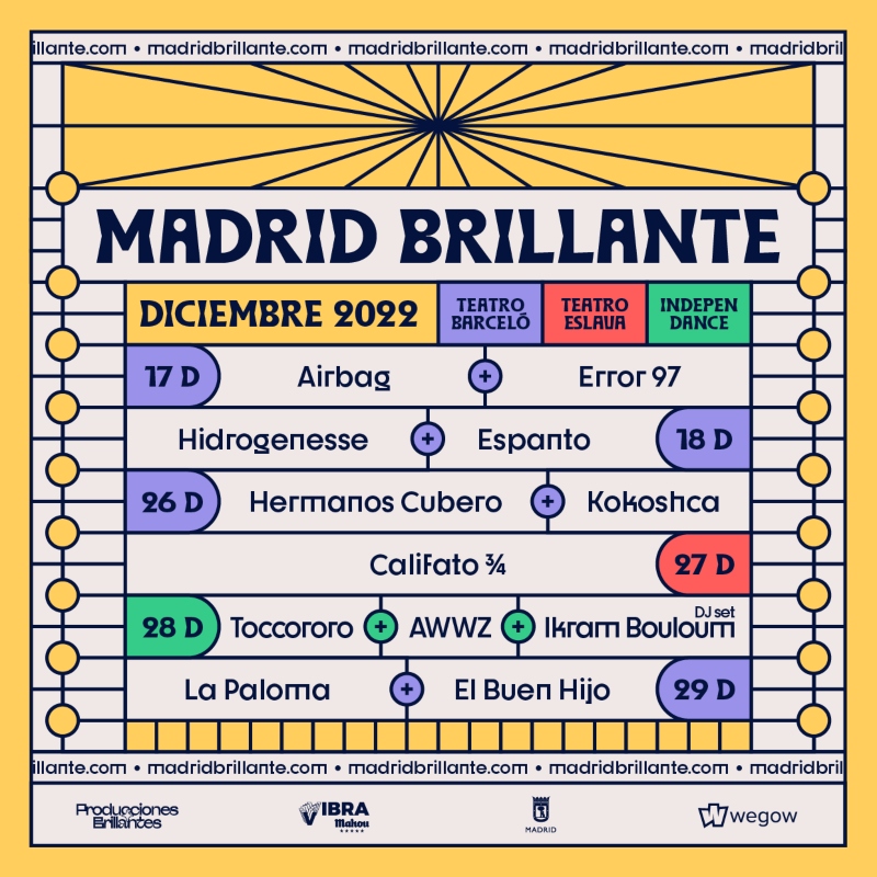 Esta segunda edición de Madrid Brillante cuenta con el apoyo de Vibra Mahou, la plataforma de música de Mahou Cinco Estrellas que genera encuentros de calidad en torno al directo, esenciales para vivir mejor.