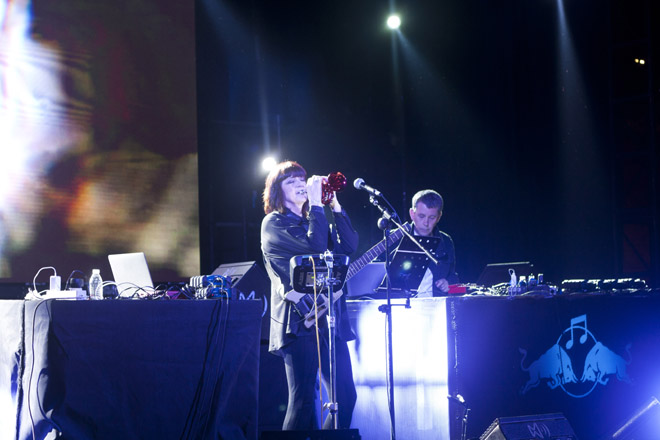Tras una pausa para reiniciar los oídos salieron a la palestra Chris & Cosey, dos de los ex-componentes de Throbbing Gristle, piedra angular del movimiento post-industrial de los finales de los 70. Una gran parte del público estaba formado por seguidores de los británicos que rozaban los 40, bailaron como los que más; hay que decir que no fueron los únicos que lo hicieron. Tras las anteriores dos palizas, hacía falta un poco de movimiento rítmico y eso fue lo que nos regalaron: Chris Carter se ocupó del techno coherente y Cosey Fanni Tutti de la voz (por momentos pretendía sumar con una baqueta pero sumó poco). Sin avisar, tocaron el último tema y, cuando el público pidió el bis, una orden desde detrás del escenario impidió a la pareja seguir tocando… Estos de Redbull tendrían que contratar a menos sargentos…
