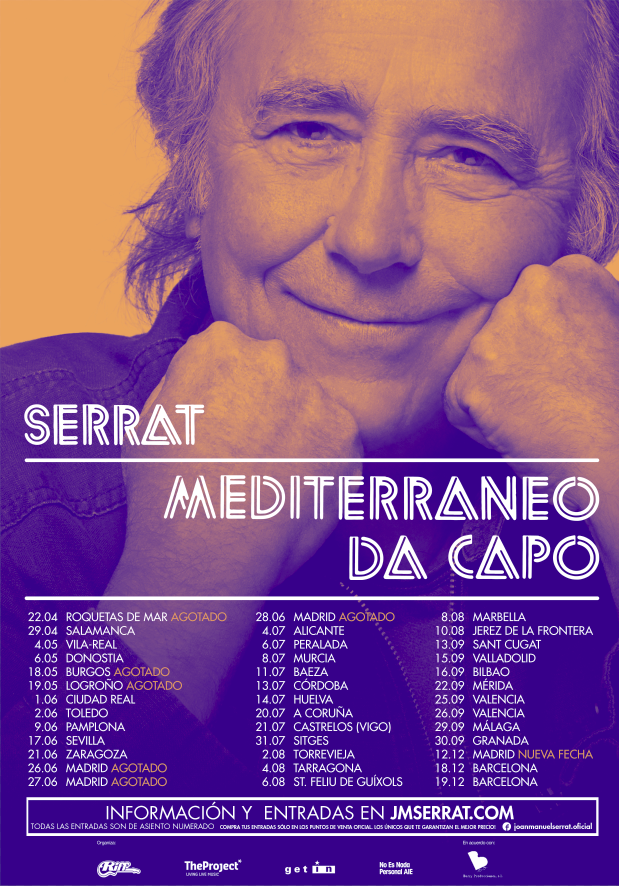 Mediterráneo, el octavo disco de Serrat, cumple 47 años en este 2018. No ha querido su autor esperar, según cuenta, a celebrar la cifra redonda que supondría el medio siglo transcurrido desde su edición en 1971; ha preferido ser prudente y anticipar los acontecimientos. Así que el pasado domingo 22 de abril inauguró en Roquetas de Mar una extensa gira de cien fechas que le llevará a recorrer nuestro país en los próximos meses, saltando al Olympia de París en mayo y ofreciendo numerosos conciertos en Argentina y Chile a partir de octubre. El espectáculo recibe el nombre de Mediterráneo da capo; un término musical italiano, da capo, que literalmente significa ‘desde la cabeza’, ‘desde el principio’.