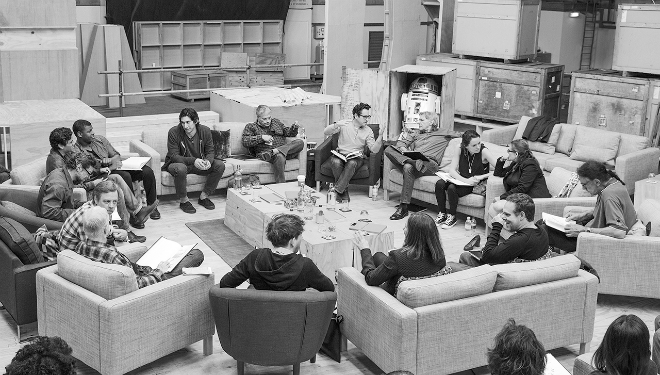 Su director J.J. Abrams ha señalado que «estamos muy emocionados de compartir finalmente el elenco de Star Wars: Episodio VII. Es a la vez emocionante y surrealista contemplar el querido elenco original y estos nuevos y brillantes actores unidos para traer este mundo a la vida una vez más; empezaremos a rodar en un par de semanas y todo el mundo está haciendo lo posible para que los fans se sientan orgullosos .»