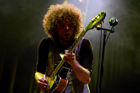 El trío australiano empezó el concierto con Dimension, tema con el que desde la primera nota establecieron una comunicación especial con el público barcelonés, que empezó a creer que el Rock no había muerto, y aunque fuera así, allí estaban Wolfmother para desmentirlo. Y es que ese ritmo de batería y bajo sumado a los riffs de guitarra hacen saltar a cualquiera que tenga un poco de chispa musical en el cuerpo. Poco después la oscura Pyramid siguió con la fiesta. El ritmo endiablado de Apple tree y la zeppeliana White unicorn sirvieron para asentar un poco al personal. El gran calor que se sufre en la Carpa se vio aumentado por los continuos saltos de júbilo de los asistentes. Y es que cuando vino el turno de escuchar Love train, cara b rescatada en el E.P. Dimensions (Interscope, 2006) y por lo tanto inédita para algunos de los presentes, nadie se quedó frío.