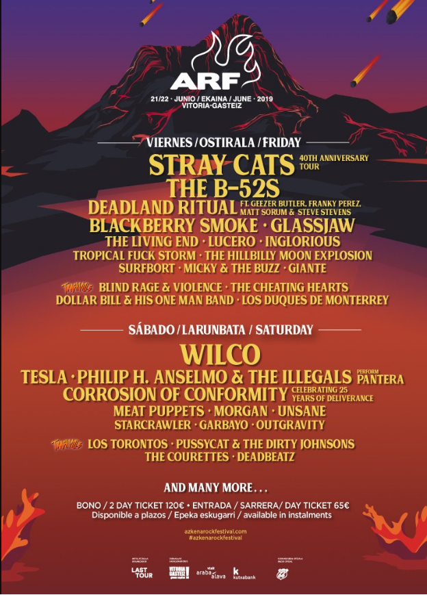 Azkena Rock Festival celebrará su edición número 18 los próximos 21 y 22 de junio de 2019 en Vitoria-Gasteiz y hoy desvela la distribución de su cartel por días y pone a la venta las entradas de día.