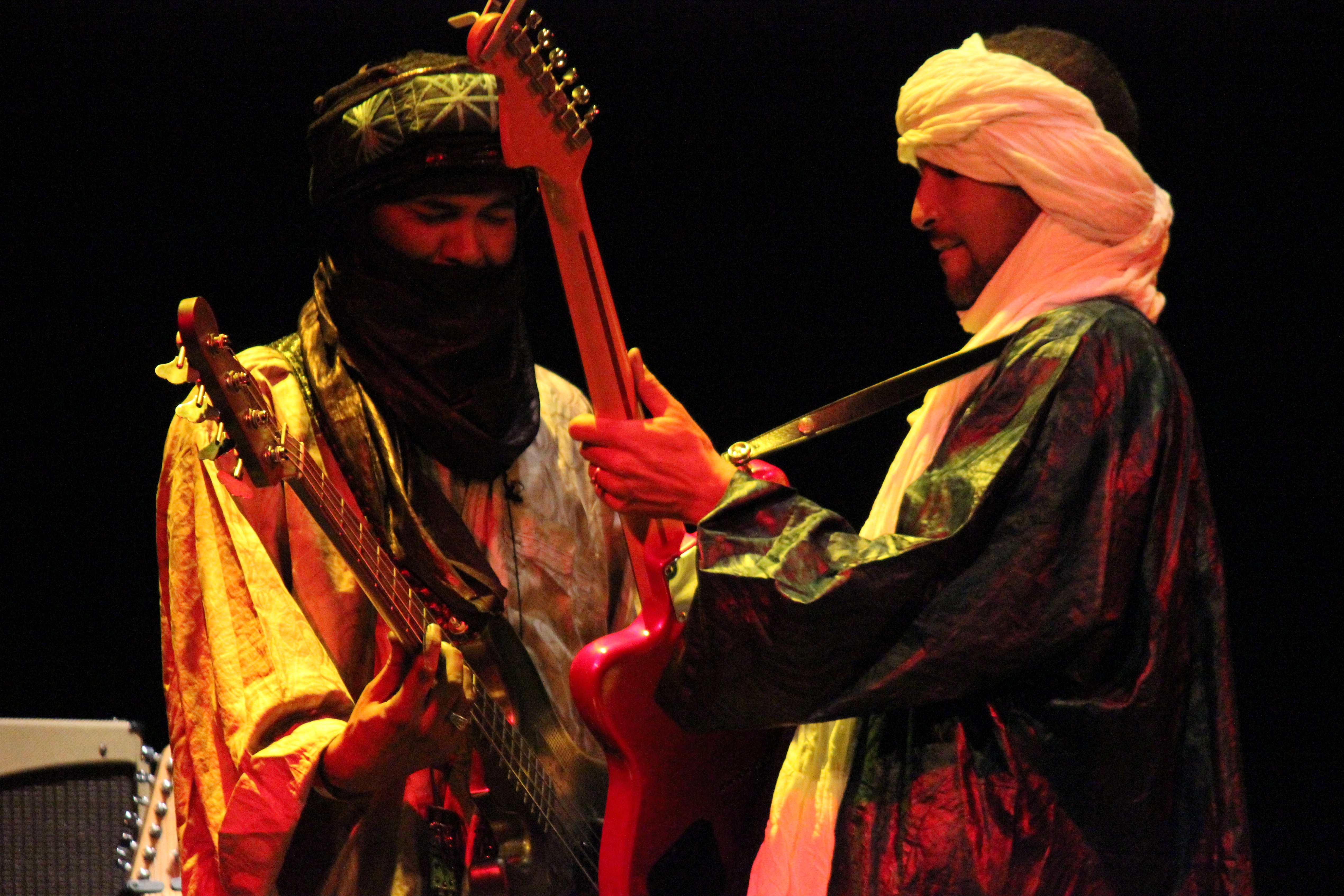 Es un espectáculo basado en la cuerda, en las voces y en la adaptación del sentimiento del blues a la sonoridad del desierto. El constante intercambio de guitarras (española y bajo entre ellas) entre los miembros de la banda, afinadas en el tono natural del color del sol del Sahara, hace casi imposible reconocer al genio creador y compositor que ha hecho del sonido de Tinariwen algo completamente inconfundible: un punteo eterno y constante sobre una distorsión inexistente, y sobre las brasas crudas y ardientes de una base simple pero confortable, como las arenas del desierto que pisan en su infinito caminar. La rítmica, tribal y en general poco variada, permite que las cuerdas dialoguen entre sí, manteniendo una tensión y una melódica que podrían durar eternamente. Se suceden los riffs, los punteos lentos y rock-bluseros, llenos de seguridad, el rasgueo armónico de la guitarra acompañante, y la movilidad funky del bajo, que tan subliminalmente nos transporta a la métrica bereber, siempre en constante movimiento.