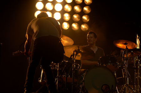 El ritmo entrecortado de Good feeling tuvo una nota curiosa y muy divertida. Antes de empezar, Healy que es todo un showman, se metió con el teclista que acompaña al grupo. Hizo que todo el publico gritara su nombre en el solo de piano de la canción («¡Claus! Claus!»). Después vino Closer, en la que también Healey hizo que nos giráramos los unos a los otros para saludar a la persona que tuviéramos a nuestro lado. Se quedó muy extrañado de que la gente respondiera tan bien a las nuevas canciones, ya que en muchas de ellas cantaban los estribillos como si fueran antiguas. Después vino otro tema insignia del grupo, Sing de su disco Invisible Band (Epic, 2001), con banjo incluido tocado por Andy. Unos problemas con la afinación de las guitarras de Fran y Andy hicieron que se bromeara un poco más con el público. La nueva Battleships sonó muy bien en directo, aunque lo bueno estaba aún por llegar. Y es que con All I want to do is rock se llegó a uno de los puntos álgidos de la noche. Fue muy impresionante ver al guitarrista Andy tocando el solo de la canción levantado por el público de las primeras filas, poniéndonos a muchos de nosotros los pelos de punta. Fue algo especial, ya que el tema era uno de los primeros singles que tuvieron la banda allá por 1997. Algo inolvidable que estoy seguro que recordaremos siempre. Pero por si fuera poco Turn y su juego de luces cerraron la primera parte del concierto.