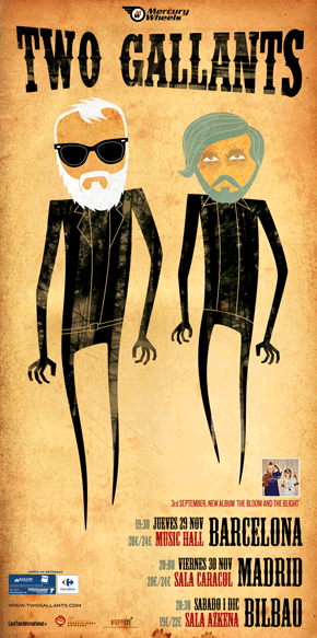 Entiendo que tienen coherencia porque transmiten eso mismo con su música: componen y ejecutan sin artificios, aportando una visión de su tierra desde el neo-folk que ni pretende ser la única ni la más grandilocuente. Stephens desde la guitarra, y con esa preciosa voz tan partida en dos que tiene, y Vogel, haciendo gala de una hipnótica y poderosa capacidad rítmica que casi habla, son el cuerpo y el pulso de este proyecto en su materialización en directo, porque en su expresiva carnalidad son capaces de crear una música realmente viva, fruto de su extraordinaria conexión. Las figuras que habitan en sus canciones, o los campos y los pueblos que recorren sus acordes, puede que no sean los más eminentes, legendarios o los más grandes e importantes, pero estos dos galanes los dibujan con tal cariño y aceptación, que hacen que parezcan únicos, irrepetibles y un poco más reales si cabe. Porque la música de Two Gallants es, ante todo, muy suya; y eso hace que sea especial.