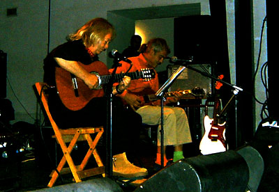 Blues & Beyond fueron los primeros en aparecer. El dúo, formado el pasado año, está compuesto por los británicos Chris Edler y Graham Smart. Éste último ha formado parte del grupo Five Shades Of Blue y ha colaborado con gente como Eric Clapton o Andy Summers (The Police), algo que pudimos comprobar en algunos momentos de su actuación en Vélez gracias al sorprendente manejo de su instrumento. Sobre el escenario, Chris se ocupa de la guitarra clásica española y de las voces en casi todos los temas, mientras que Graham alterna la guitarra eléctrica y la ármónica.