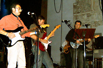 Abrieron con una incendiaria versión del Red house de Jimi Hendrix, con la que ya pudimos comprobar la fuerza que Lito proporciona al grupo (con tres guitarras) y la magnífica sección rítmica a cargo del bajo de Tomás Nieto y la batería de Salvy Zurita (que, curiosamente, no estaba a la vista y tocaba desde detrás del telón). Tampoco faltaron temas de cosecha propia, como Mediocridad y tradicionales del blues y rock como el Crossroads de Robert Johnson o el Roll over Beethoven de Berry. Gran actuación que dejaba el terreno propicio para unos Burning grandiosos.